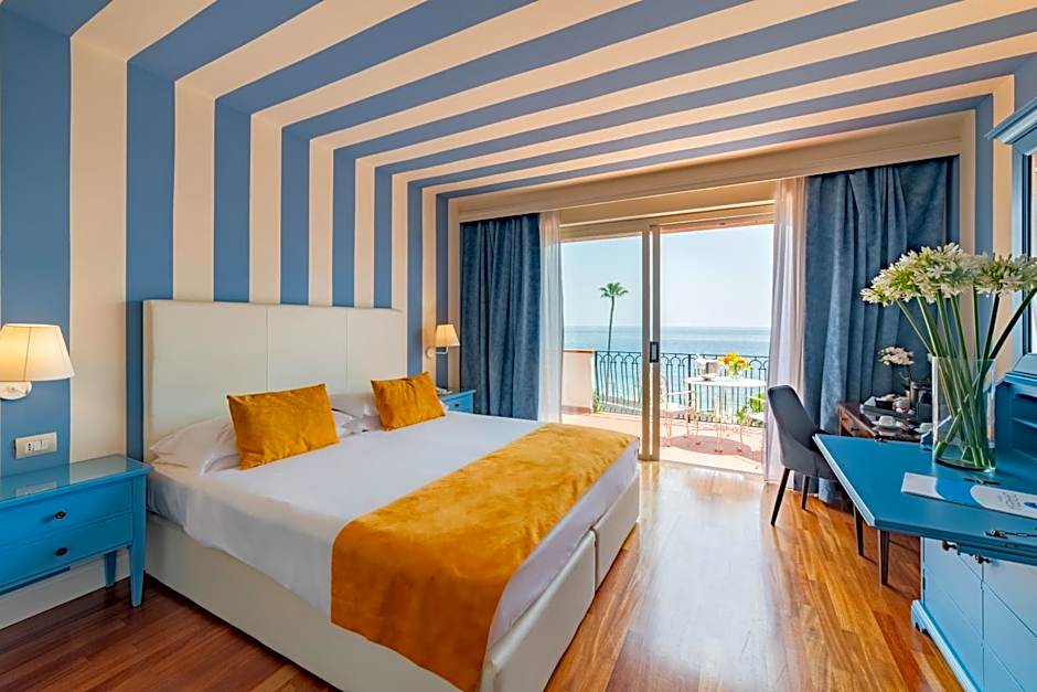 This elegant room offers a balcony with a view of the Mediterranean Sea.